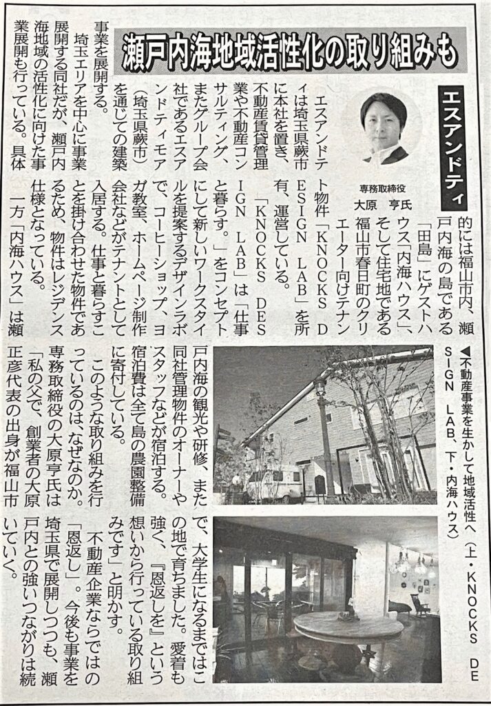 「週刊ビル経営 1222号」に弊社で取り組んでいる『瀬戸内海地域(広島県)での取り組み』について掲載されました。